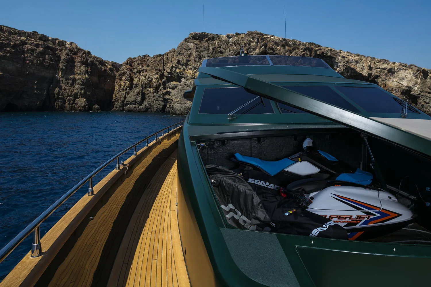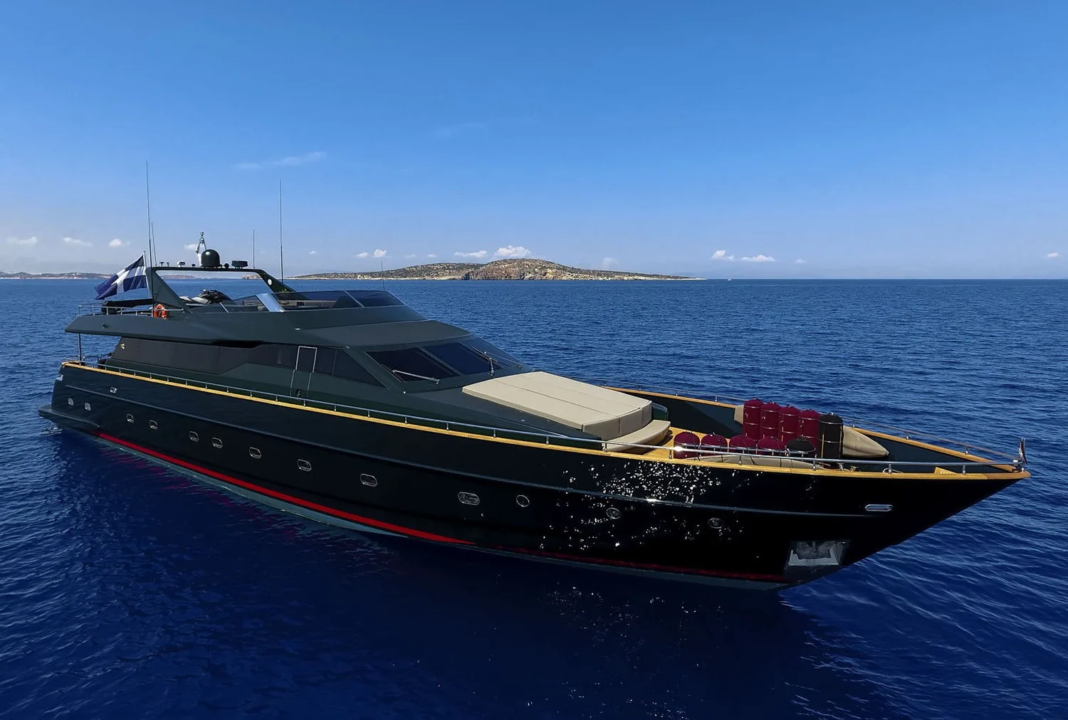 A one-of-a-kind Tecnomar 35 superyacht (116ft), CAN’T REMEMBER turns heads wherever she roams, thanks to her super sleek profile, deep navy hull and an exceptional presence on water. CAN’T REMEMBER has six staterooms all with en-suite facilities, a unique choice for families as she can accommodate with comfort up to 12 guests! Her main salon ,separated from dining room with a sleek black fixture, boasts selected furnishings and large windows for incredible views. Characterized as the ultimate pleasure point and designed with comfort and entertainment in mind, she has many options for entertaining both indoors and on her exterior decks. Exterior decks feature the aft deck with its shaded al fresco dining area, the fore deck’s large sun pads and the upper deck with an outstanding dining area for 22 guests. Being a certified Kosher environment and providing exceptional services on board , Can’t Remember stands out for a summer experience like no other! Her 7 star services inspires and elevates guest experience to the maximum ,starting from daily changing of apparel and upgraded housekeeping to delivering top tier services in all aspects with great attention to detail. The selection of water toys can ensure pleasing guests of all ages and are easily accessed from her extended swimming platform. Water skis, kayaks, jet skis, stand-up paddleboards, wakeboard, snorkel gear and an inflatable slide are just some of the fun that awaits you on board!
