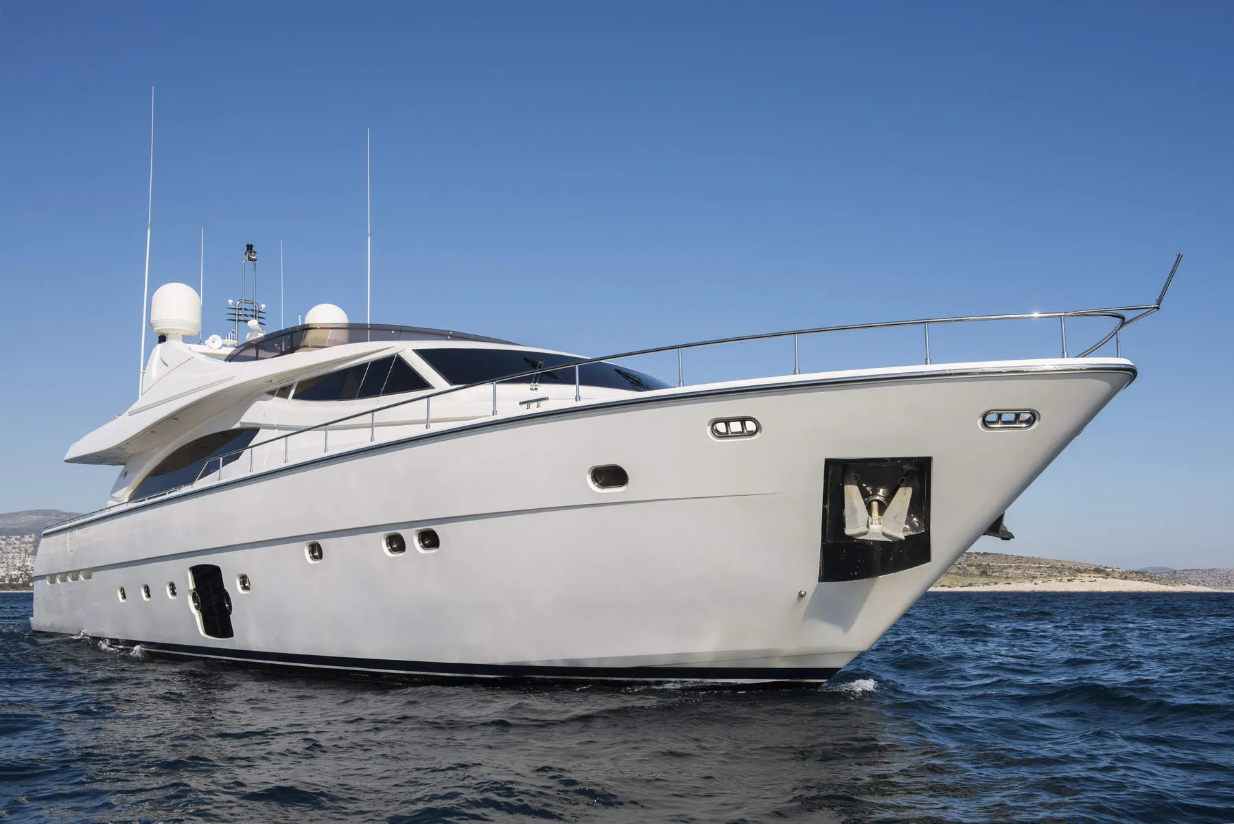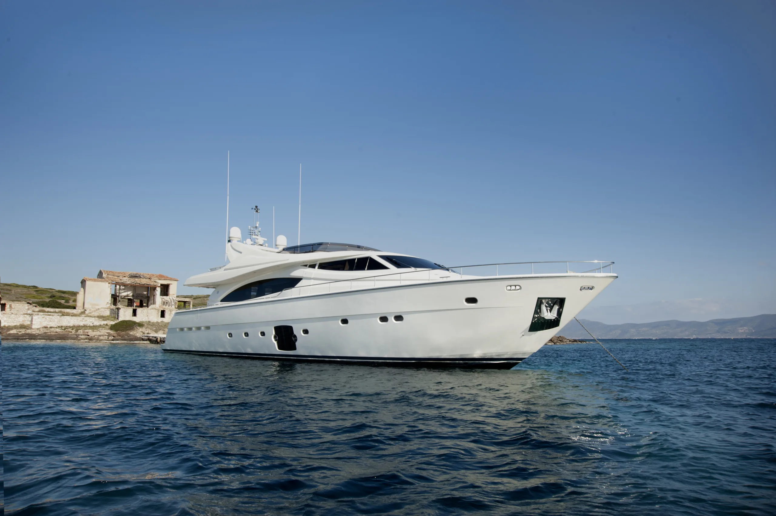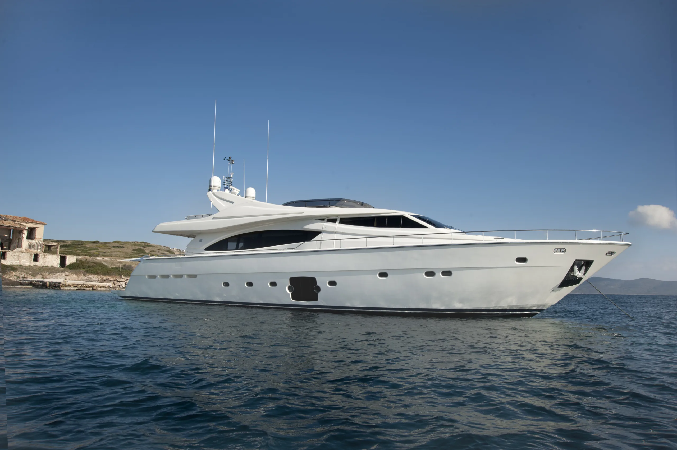 TypeMotor BoatLength27.03mBeam6.72mDraft1.96mGuest10Cabins4Crew5Price Range45,000-49,000€Summer CruisingMediterraneanBuilt2006Refit2021BuilderFerretti YachtsShare