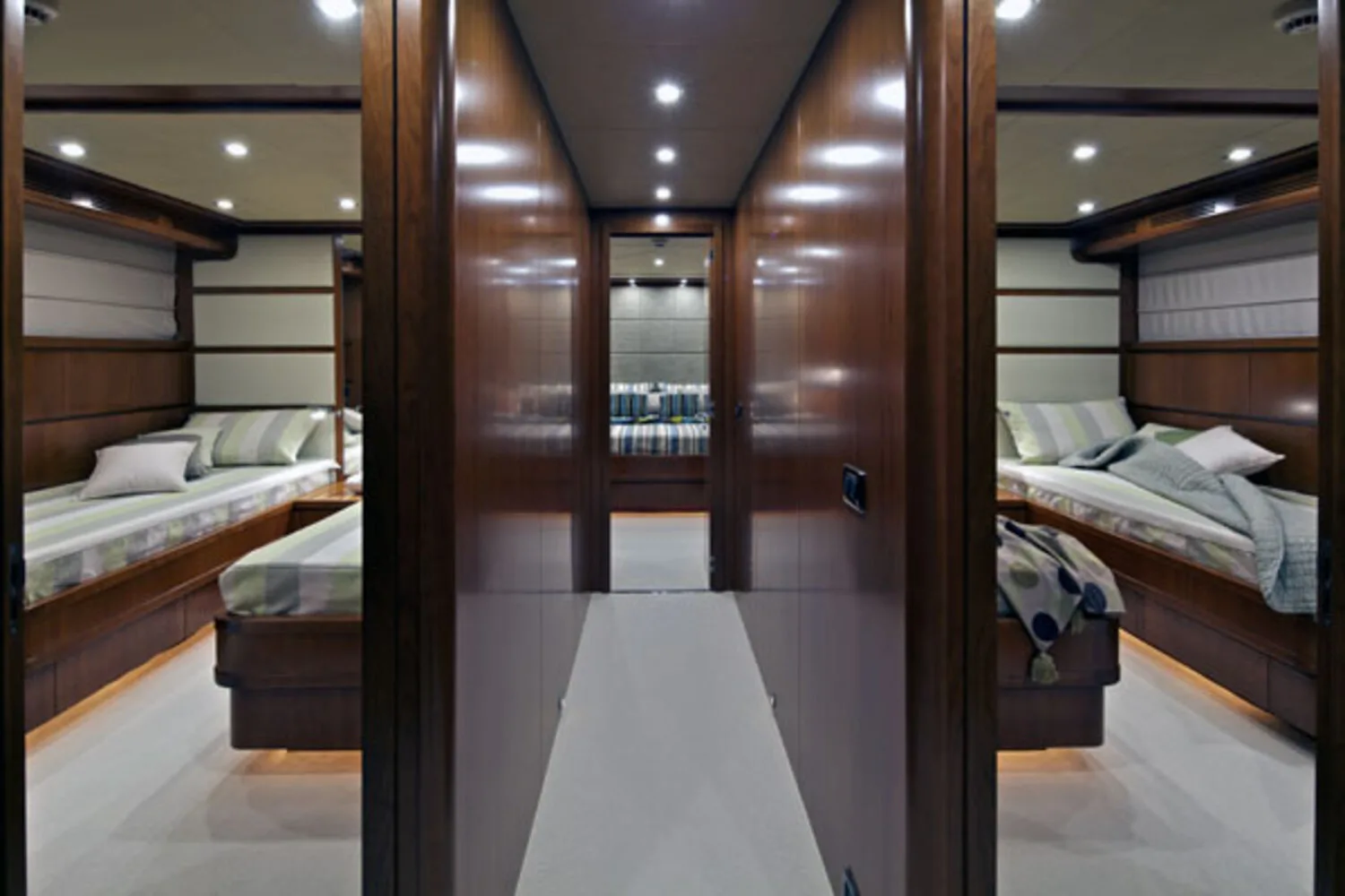 -Two Twin cabins on the lower deck with one Pullman berth in each and wardrobe.