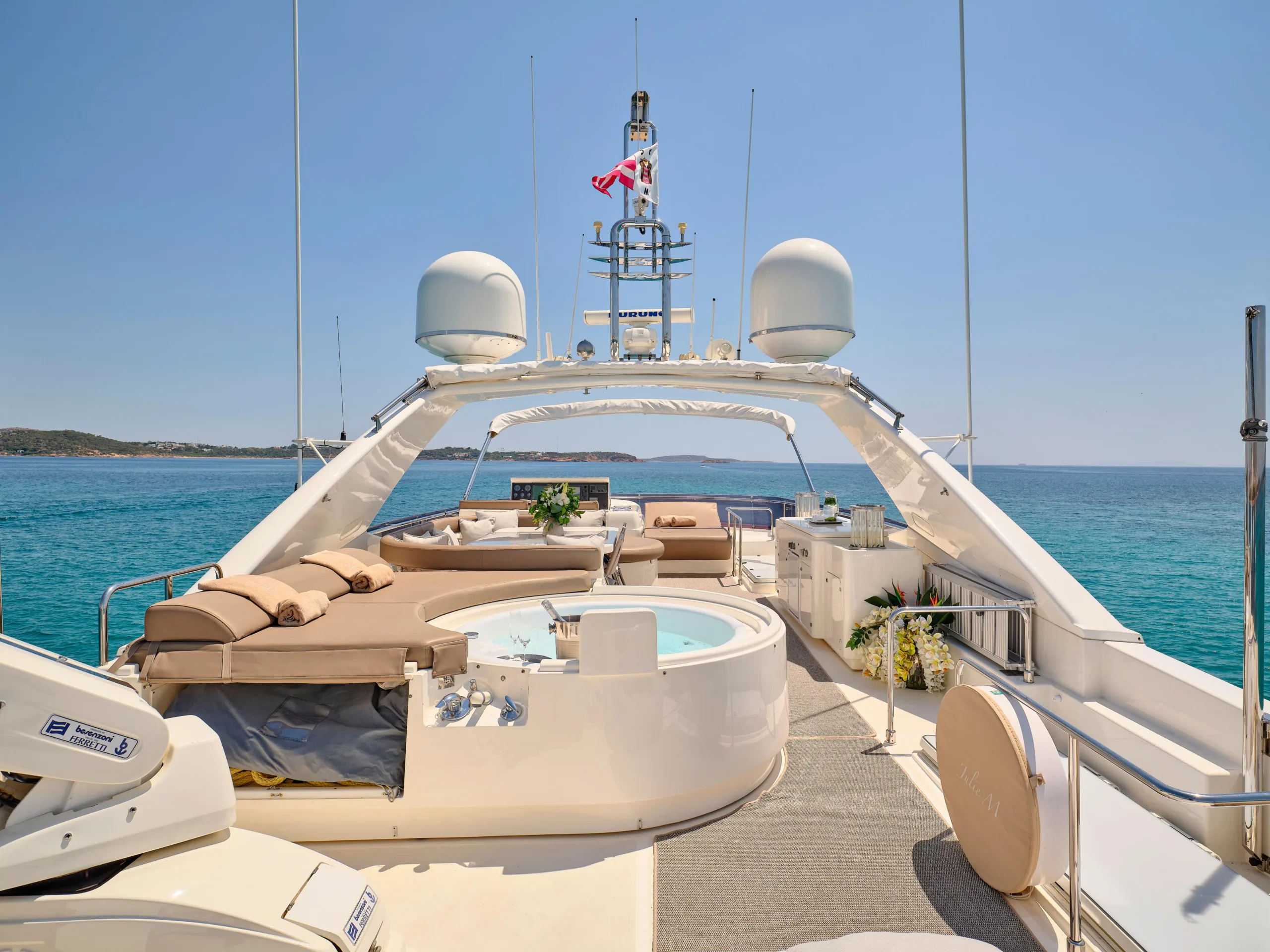 Relax in the jacuzzi on the flybridge, indulge in a delightful gastronomic experience,