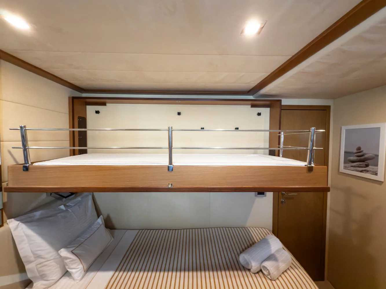 Accommodating up to 9 guests in 4 stylish cabins—including two doubles and two twins (one with a pullman berth)—Argo offers the perfect layout for families or groups of friends. Each cabin features en-suite facilities, combining comfort and privacy for every guest.
