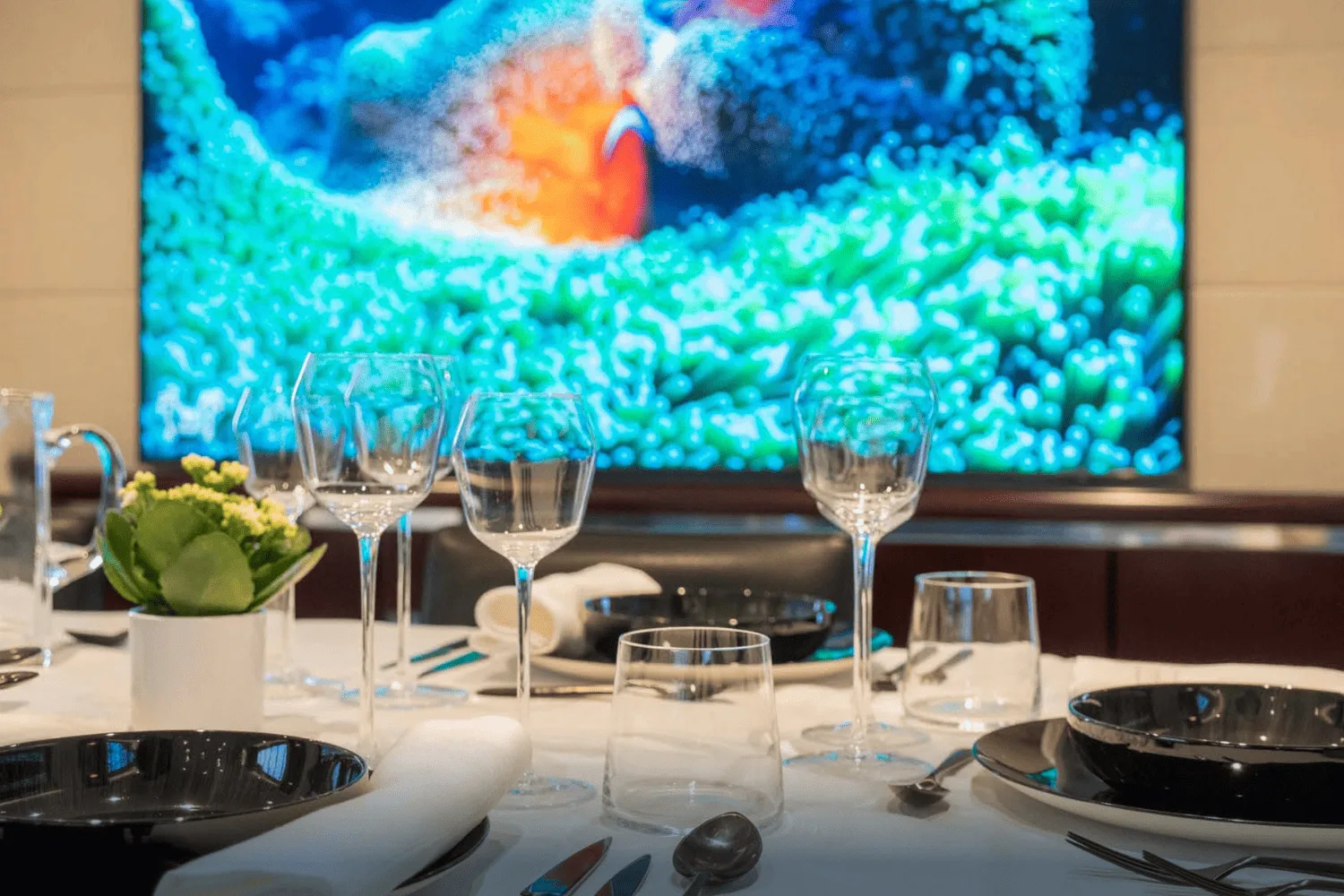 small table, transforming the area into an elegant setting for informal dining