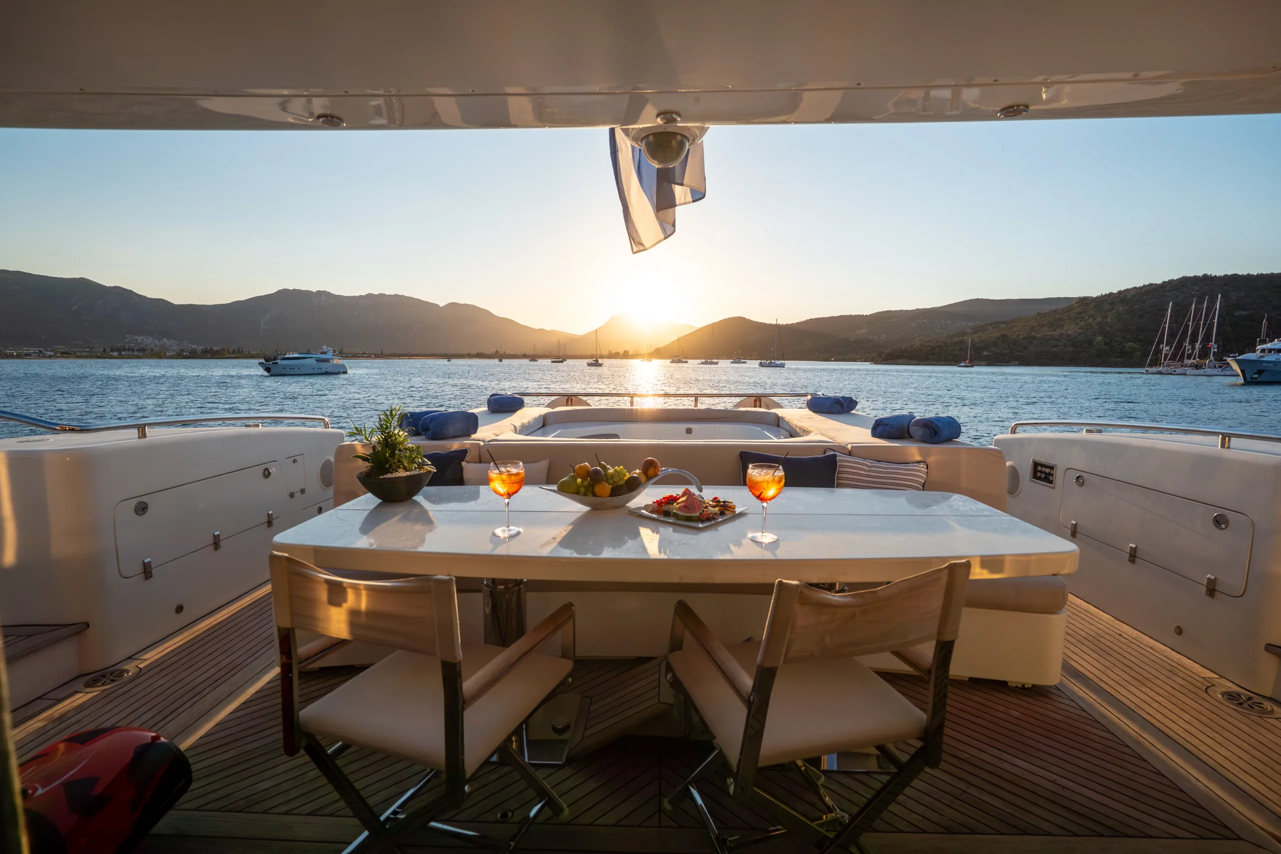 Liberdade offers a modern and spacious interior, highlighted by a stylish central bar on the main deck that sets the tone for relaxed luxury. The full-beam Master Suite, also located on the main deck, serves as a private retreat complete with his and hers en-suite facilities and refined detailing throughout. Generous outdoor spaces provide the perfect setting for al fresco dining, lounging, and entertaining. Onboard, guests can enjoy gourmet meals freshly prepared using traditional local ingredients, unwind in the sauna room, stay active with gym equipment, and make the most of a wide variety of watertoys for endless fun on the water.