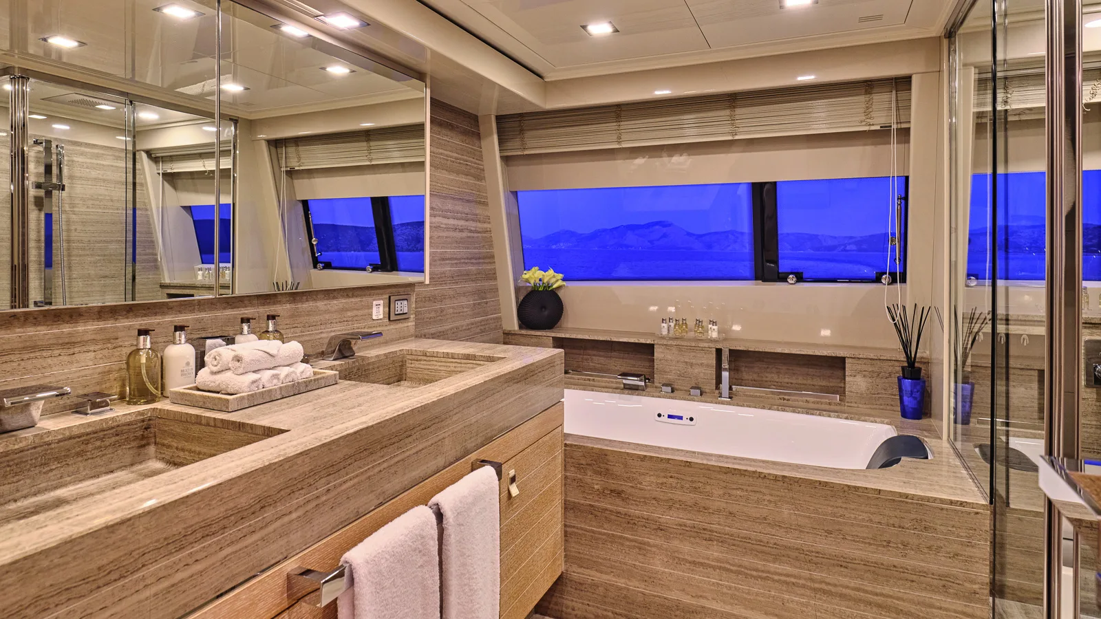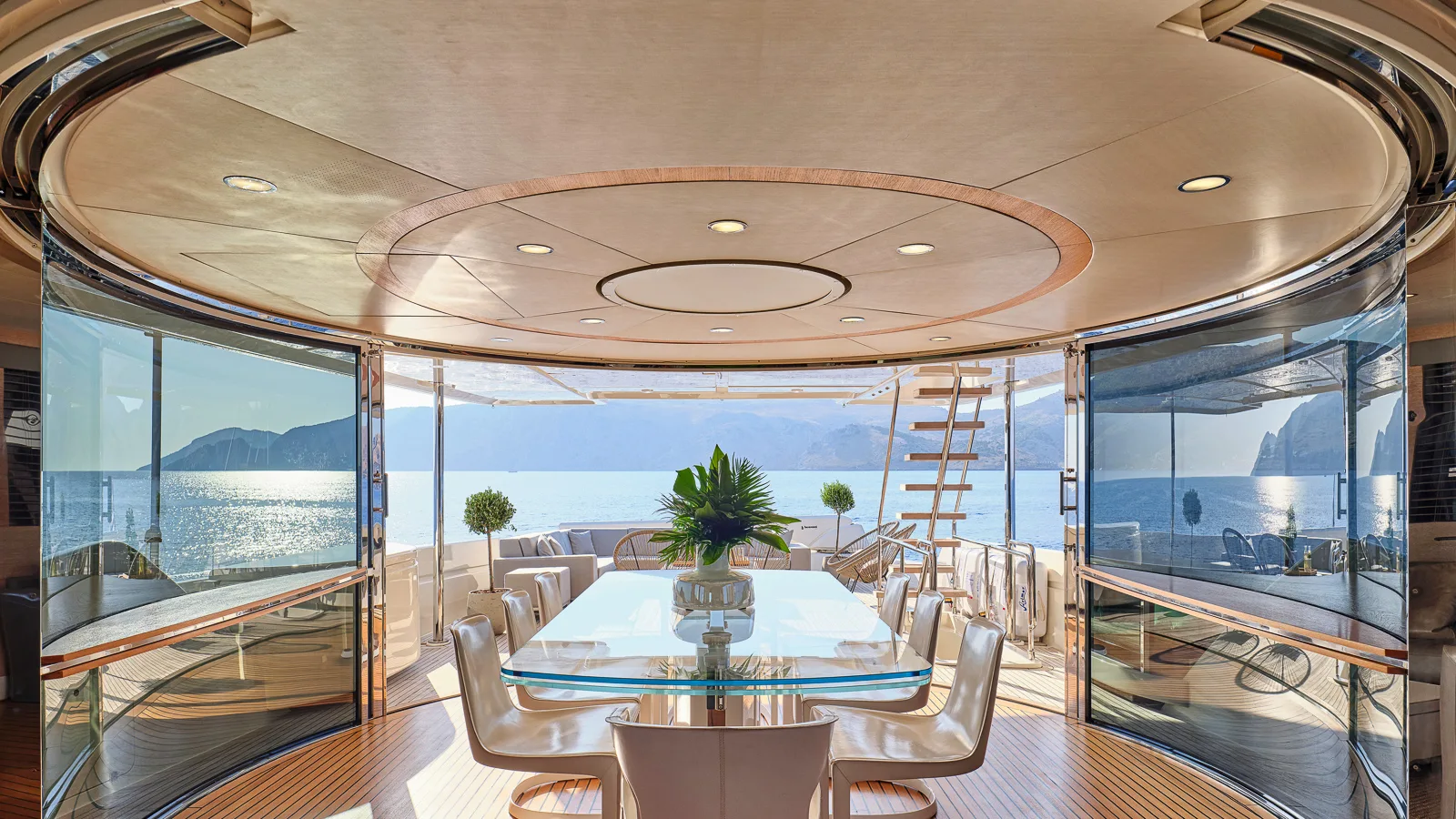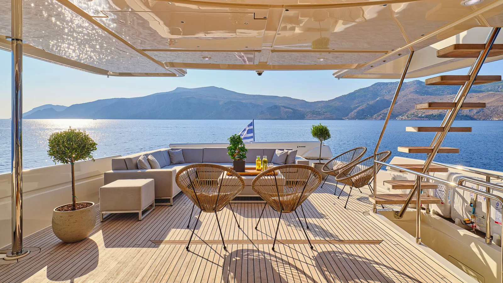 Designed for optimal outdoor enjoyment, she features expansive exterior decks (including a sundeck Jacuzzi and BBQ) and generous lounge/entertaining space.
