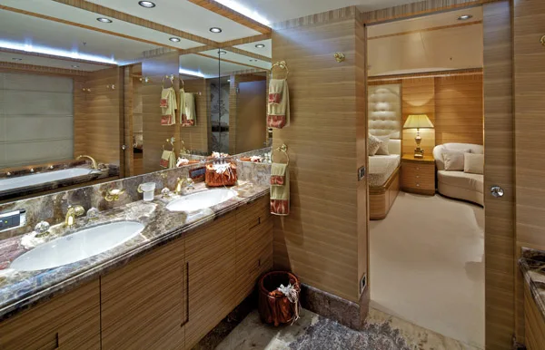 -Lower deck: Two VIP guest suites with en suite bathroom with Jacuzzi. Two twin guest cabins with en-suite bathrooms and a Pullman berth in each.