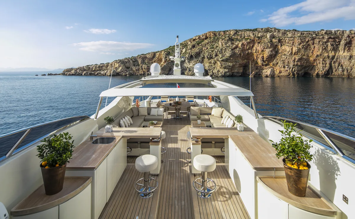 The 120ft 6in / 36.58m yacht ‘Rini’ was built in 2009 by Posillipo and recently refitted in 2018. Upon stepping onboard, you will immediately experience the fresh, crisp and light atmosphere that she offers. ‘Rini’ lives up to her name with her vibrant and humble beauty. Accommodating up to 12 guests, she makes the perfect yacht for any holiday or vacation with friends and family.
