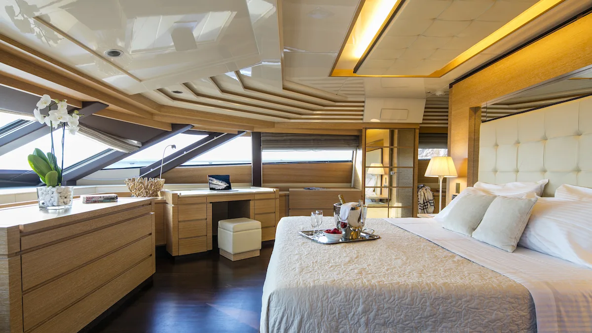 -One full beam Master cabin with king size bed on the main deck and en-suite facilities.