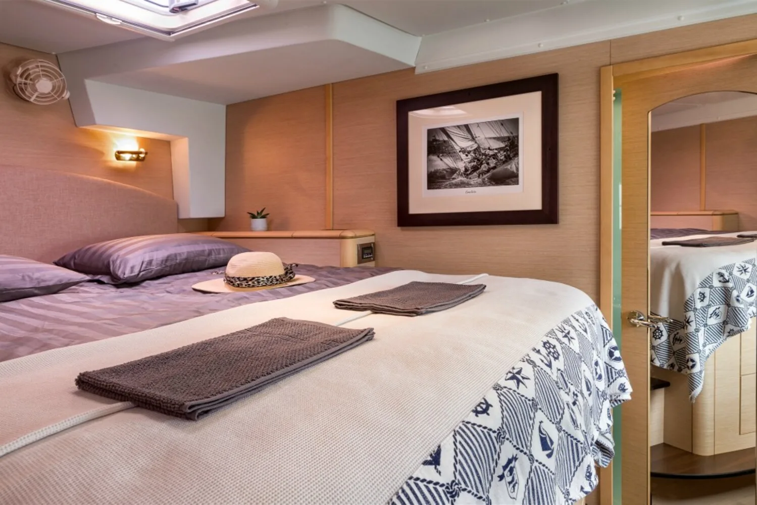 ‘Twin Pride’ was built in 2010 by Lagoon. She is agile and smooth as she cruises at 9 knots. She is a spacious sailing catamaran able to accommodate up to eight guests in four luxurious double bed cabins, all with en-suite facilities and fully air-conditioned.